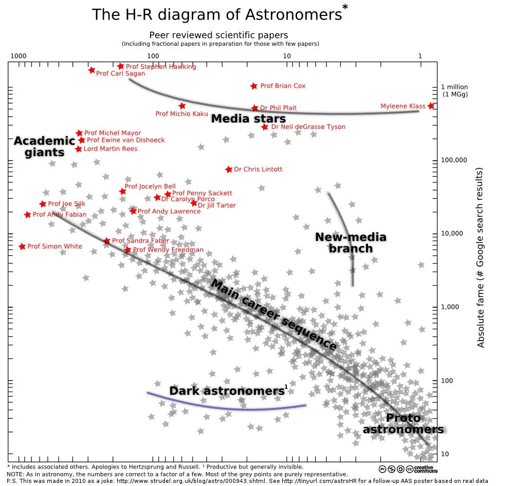 Jokes aside, this index suggests an interesting meta-science question: what happens if we analyze scientists buy plotting the # of peer-reviewed papers against their popularity as measured by Google search results?