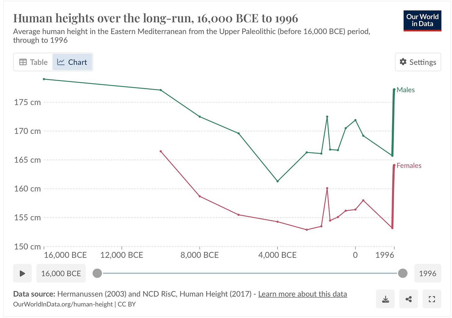 Before you say “malnutrition”, the data seems to suggest it was agriculture that made men short