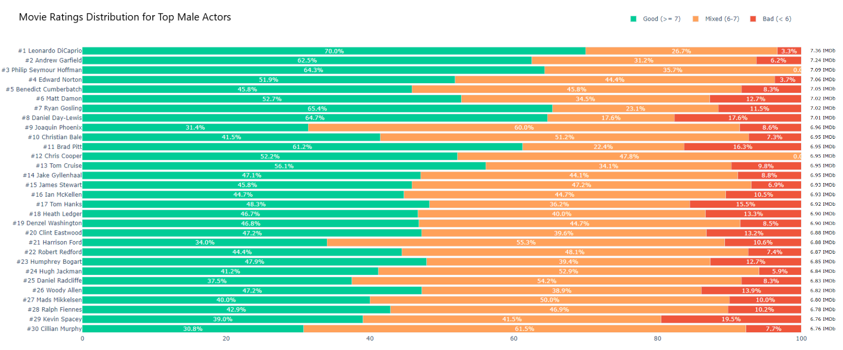 When it comes to (male) protagonists, it’s clear that a great actor has a huge impact on the movie, but it’s interesting that Cillian Murphy’s movie ratings are a fraction of actors like DiCaprio and Andrew Garfield