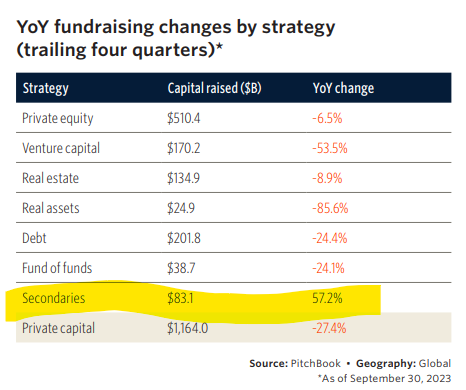 What I want to highlight is that the one pocket of value in VC right now is clearly in secondary stock sales — which I guess is more accessible than direct VC and less competitive than straight up public markets