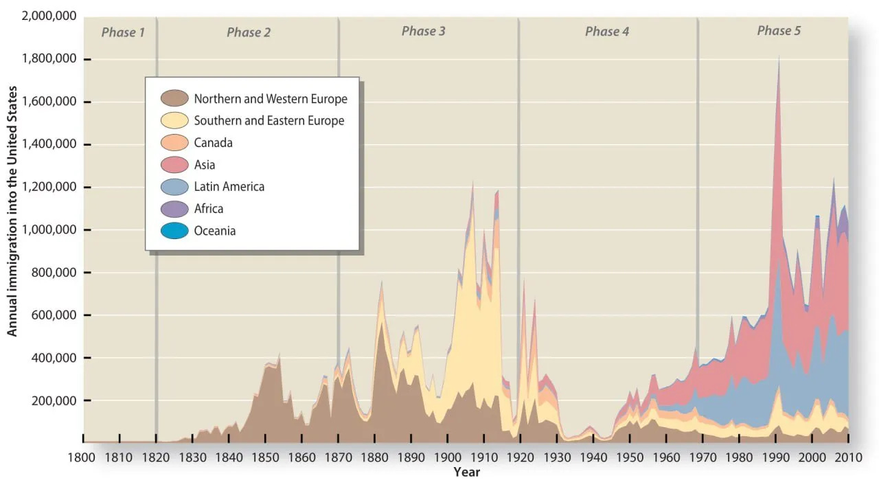 The drop in Greencards in the 20s-40s is bc of the Immigration Act of 1924 which resulted, among other things, in the first heavy restrictions against Asians and Italians