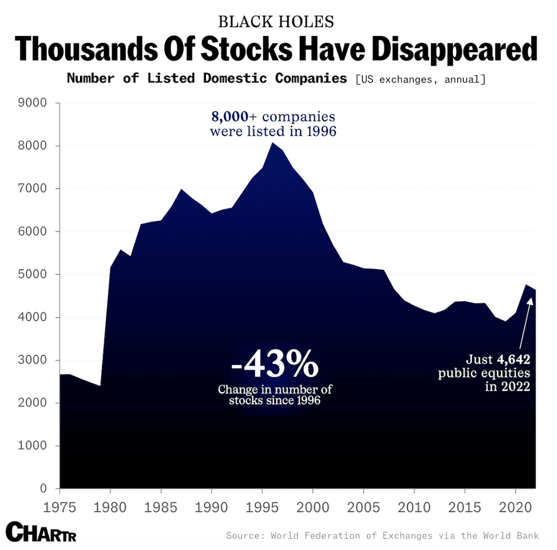 Although that might be because in general IPOs are less of a thing and most publicly traded corporations have gone extinct